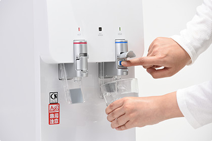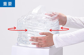 ボトル交換時、ボトル差し込み口に水が溜まっていたら、きれな布でふき取ってから新しいボトルを挿してください。